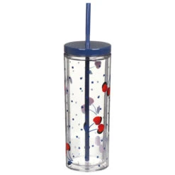 The tumbler fits 24oz (681ml) of your favourite hot or cold beverages, perfect for any scenario. The lid of the tumbler is a clear so you can see its contents and features a small spout, concealed under a sliding panel. The main body is decorated with the ’Garden Toss’ theme which features sporadically placed flowers, in a yellow, blue, green and red colour scheme. This is all set against a sleek navy background which provides a beautiful contrast. Brilliant for use for hot or cold drinks, this tumbler is sleek and multifunctional.