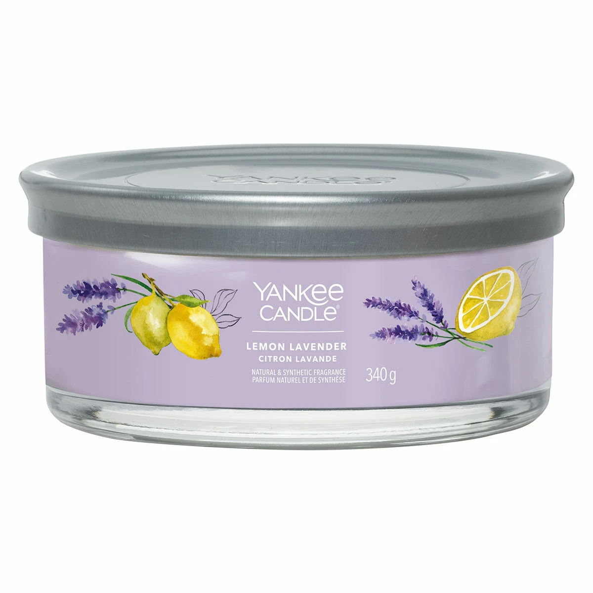 The wonderful fragrance of Lemon Lavender from Yankee Candle has a familiar and comforting feeling of floral freshness. The sleek glass vessel of this Signature Multi-Wick Tumbler candle compliments the fragrance and will look wonderful on your coffee table or mantlepiece. The candle comes with a silver metal lid that doubles as a stand to sit your candle on to protect your surfaces.