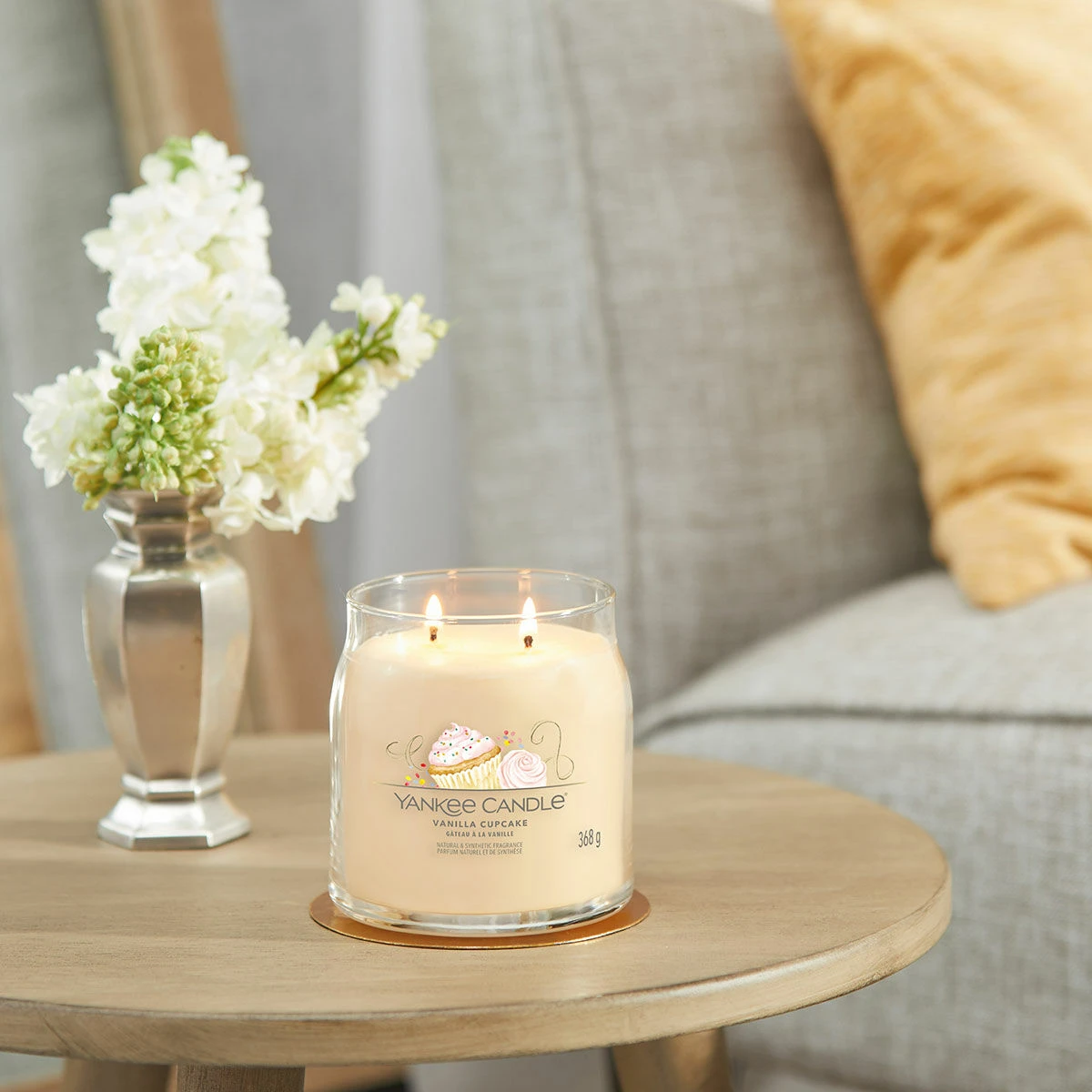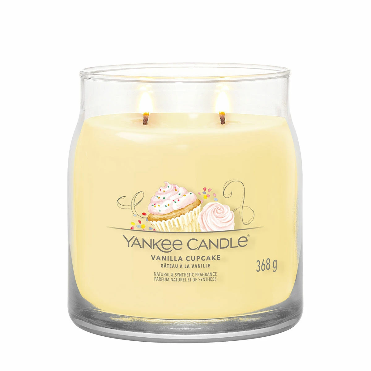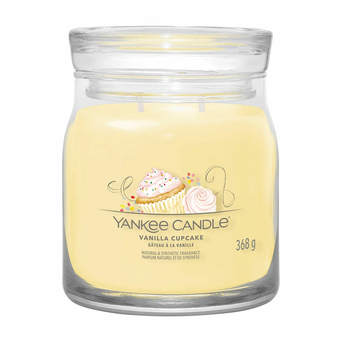 Enjoy the gorgeous Vanilla Cupcake fragrance in the wonderful Signature Medium Jar Candle, a sleek glass vessel that compliments the fragrance and will look wonderful in your home. The wonderful fragrance from Yankee Candle captures the rich and creamy aroma of vanilla cupcakes, with hints of lemon and lots of buttery icing.